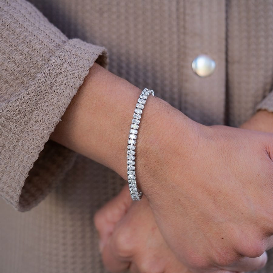 Discover the timeless elegance of our 10 CT TW Oval Lab-Grown Diamond Tennis Bracelet, available in your choice of 14K White or Yellow Gold. Adorned with a stunning array of F-G color and VS clarity lab-grown diamonds, each weighing 0.25 carats, this bracelet is expertly crafted to showcase exceptional brilliance and charm. Perfect for any occasion, it beautifully marries classic sophistication with ethical craftsmanship, making it a truly captivating addition to your jewelry collection.