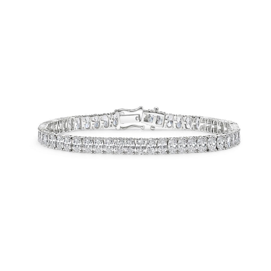 14K white Gold Lab Created Diamond Oval Tennis Bracelet 10 CTW